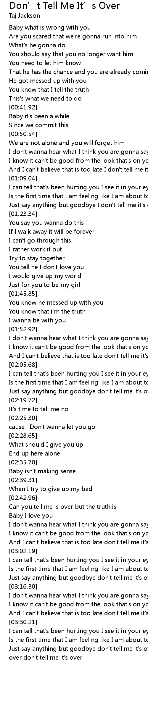 Just say anything but goodbye don't tell me it's over tell me it's over don't tell me it's over |