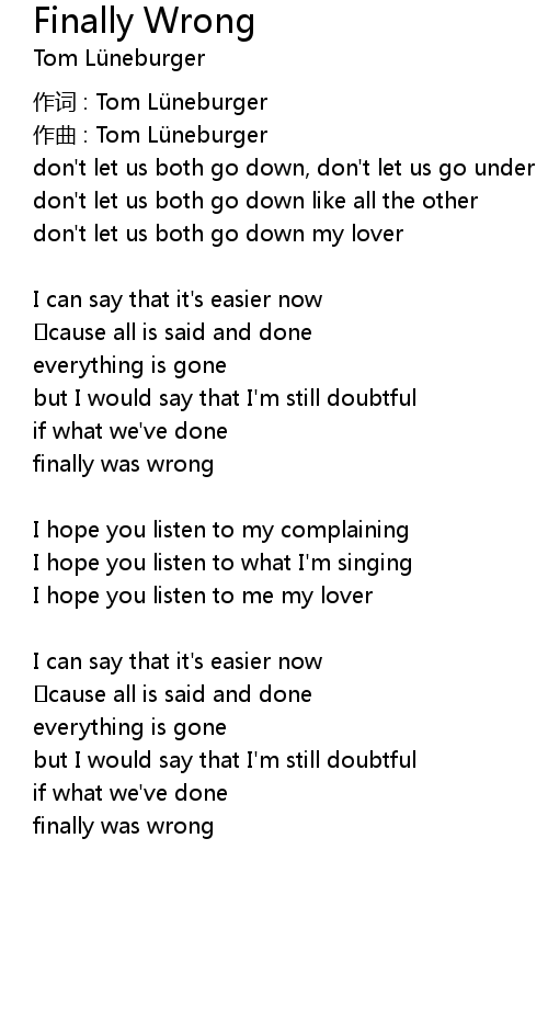| Song | Finally Wrong |