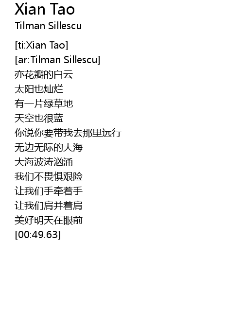 | [00:40.80] | ràng wǒ men shǒu qiān zhuó shǒu |