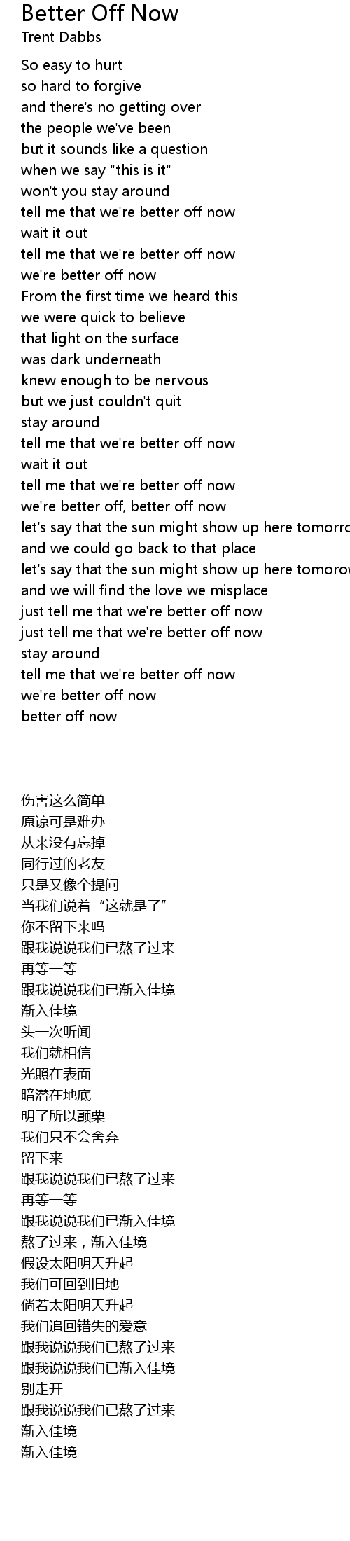 Better Off Now Lyrics