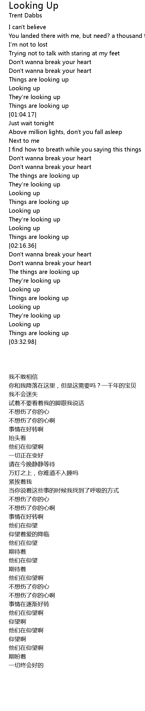 Looking up |