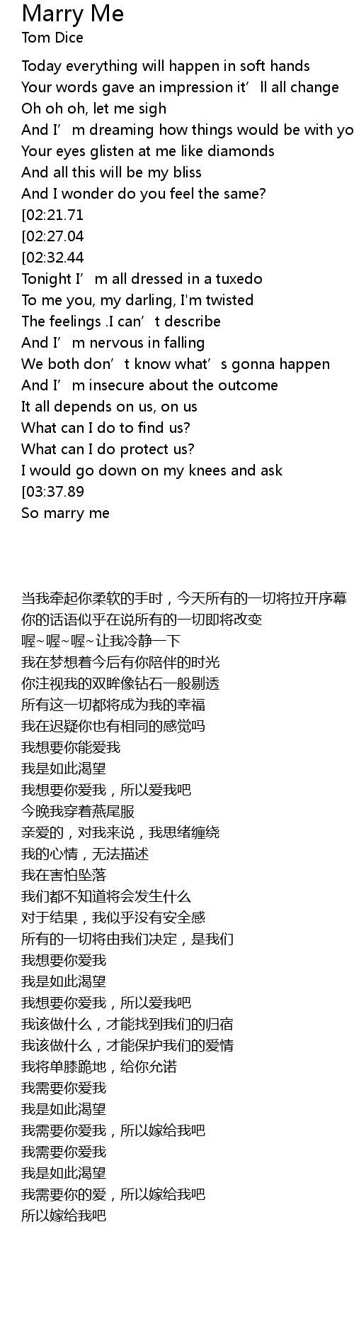 | [03:16.08][03:37.89] | I want you to love me, so marry me |