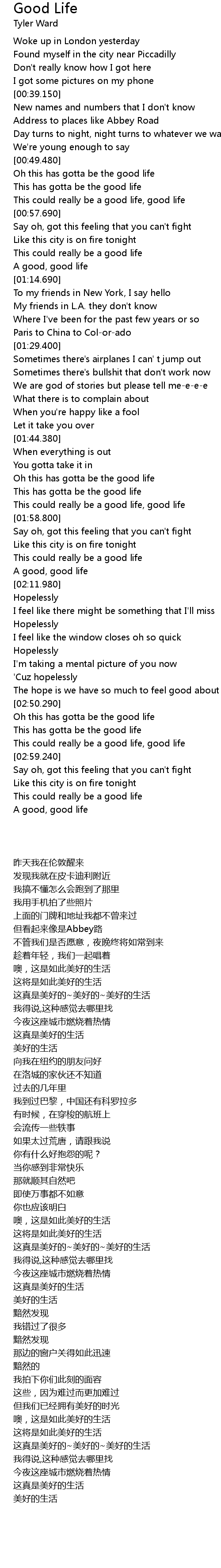 Oh this has gotta be the good life |