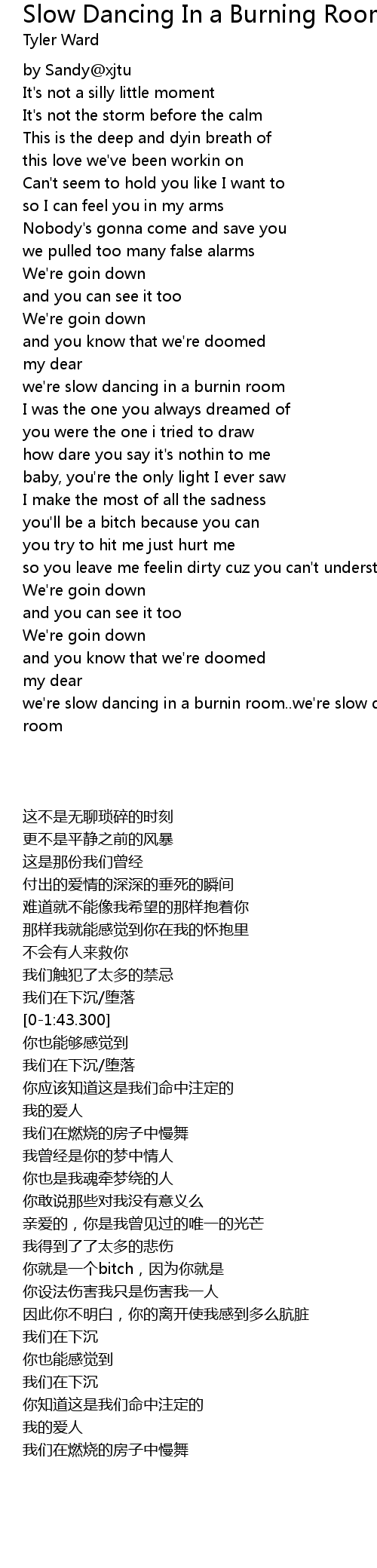 we're slow dancing in a burnin room..we're slow dancing in a burnin room |