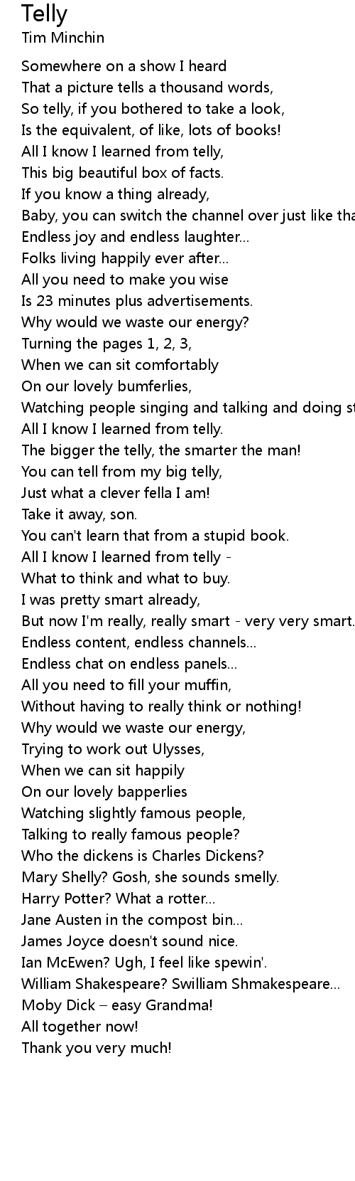 | All I know I learned from telly, | |
