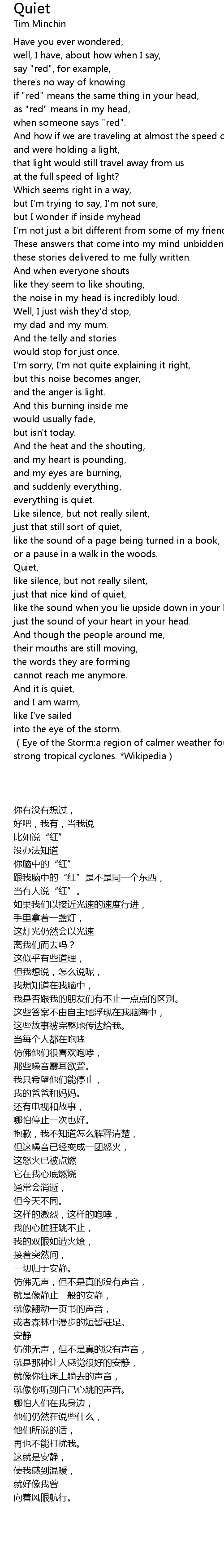 | [03:35.62] | (Eye of the Storm:a region of calmer weather found at the center of strong tropical cyclones. *Wikipedia) |