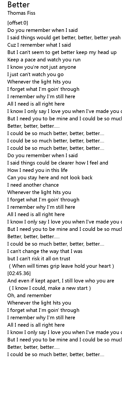 | [00:28.72] | But I can' t seem to get better keep my head up |