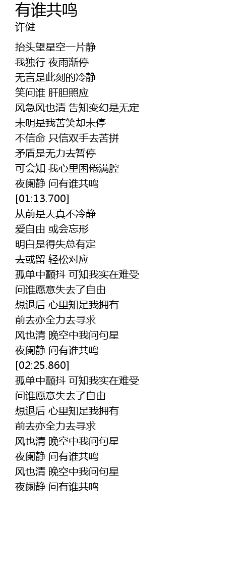 | [01:09.660] | 夜阑静 问有谁共鸣 |