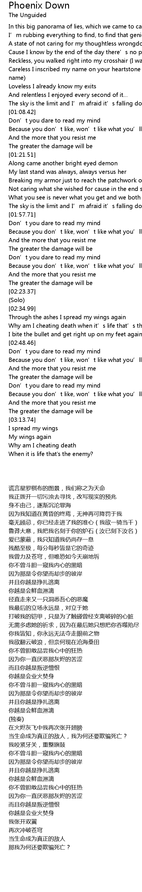 | [02:38.14] | Why am I cheating death when it’s life that’s the enemy? |