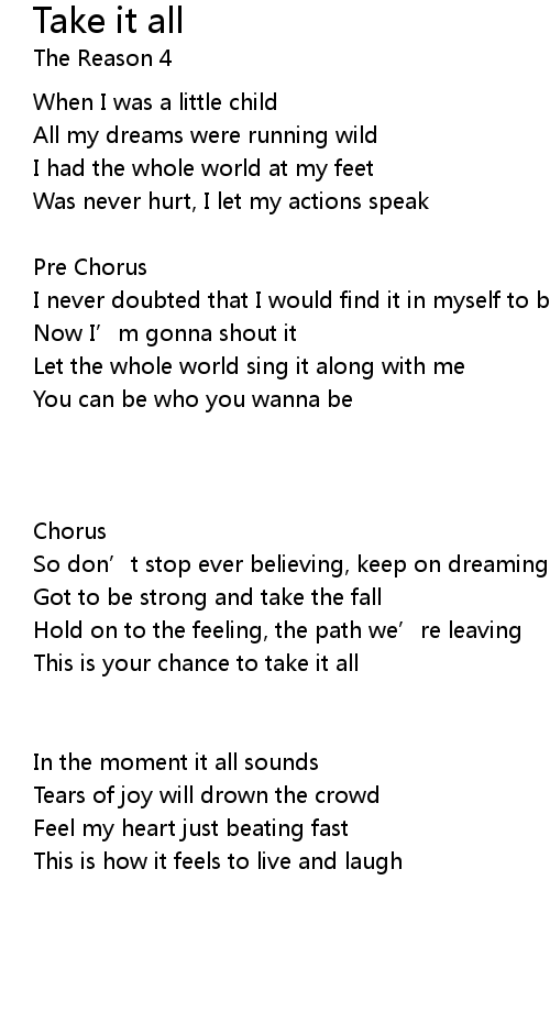| Song | Take it all |