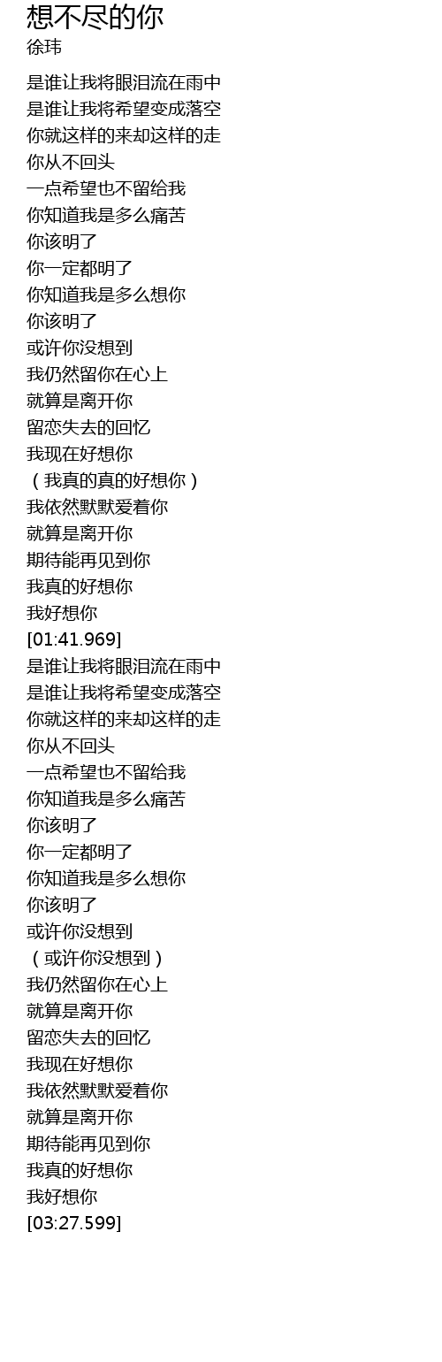 | [03:16.929] | wǒ zhēn de hǎo xiǎng nǐ |