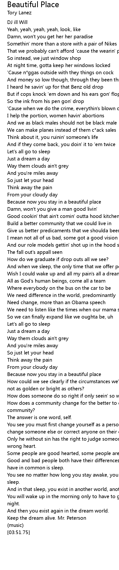 Because now you stay in a beautiful place |
