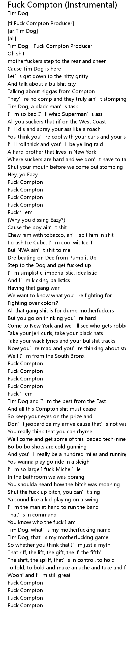 | [00:00.00] | Tim Dog Fuck Compton Producer |