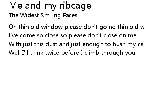 | [01:23.85] | Oh thin old window please don't go no thin old window please |