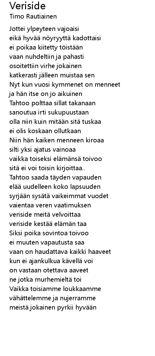 | veriside meitä velvoittaa | |