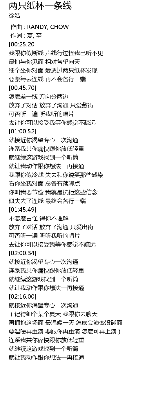 | [00:38.08] | 细个坐你对面 爱透过两只纸杯发现 |