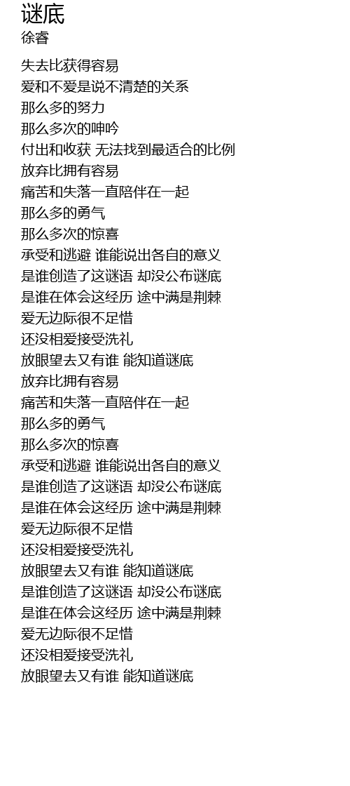 | [02:24.57] | 是谁创造了这谜语 却没公布谜底 |
