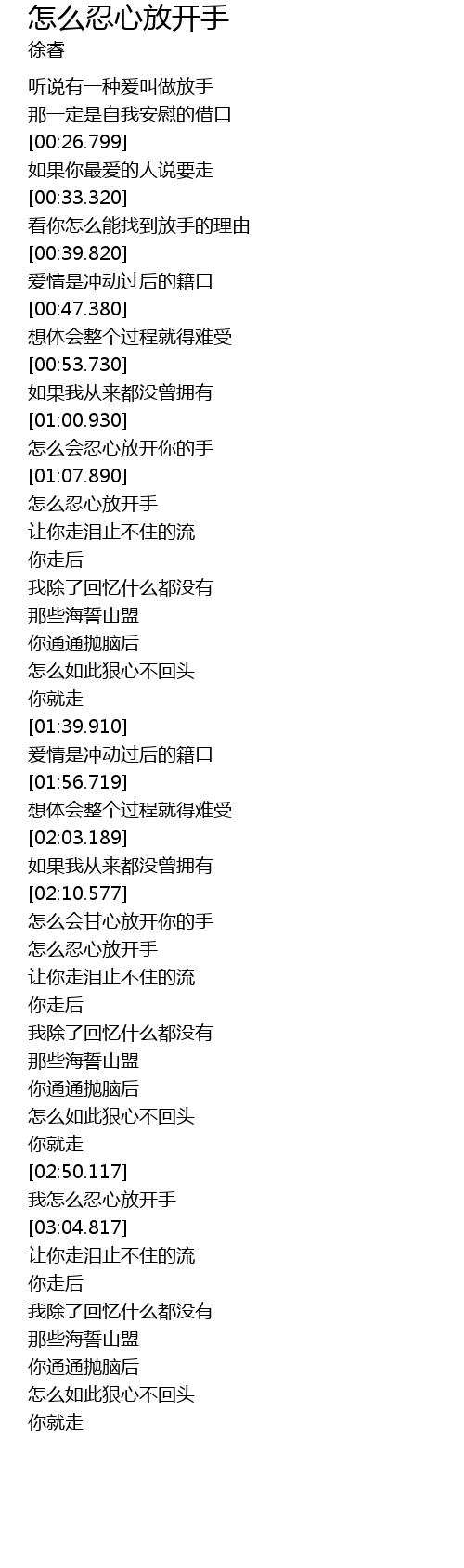 | [01:08.440] | zěn me rěn xīn fàng kāi shǒu |