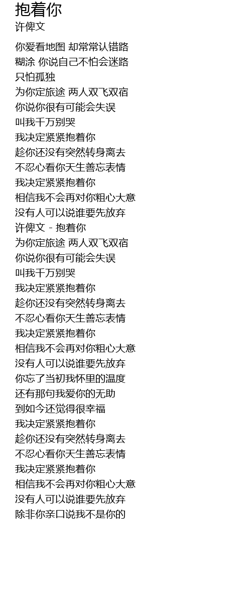 | [01:29.539] | xǔ bǐ wén bào zhe nǐ |
