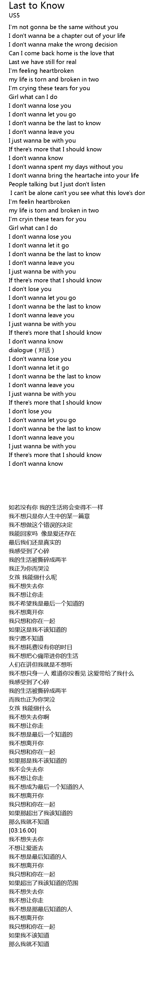 | [03:38.00] | I don' t wanna be the last to know |