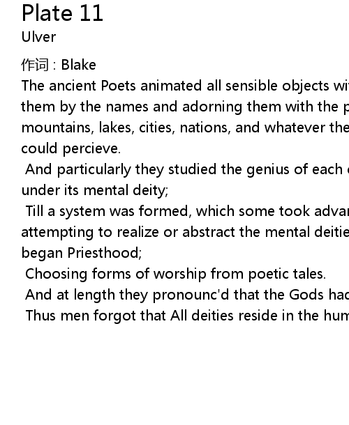 | Till a system was formed, which some took advantage of & enslav'd the vulgar by attempting to realize or abstract the mental deities from their objects: thus began Priesthood; | |