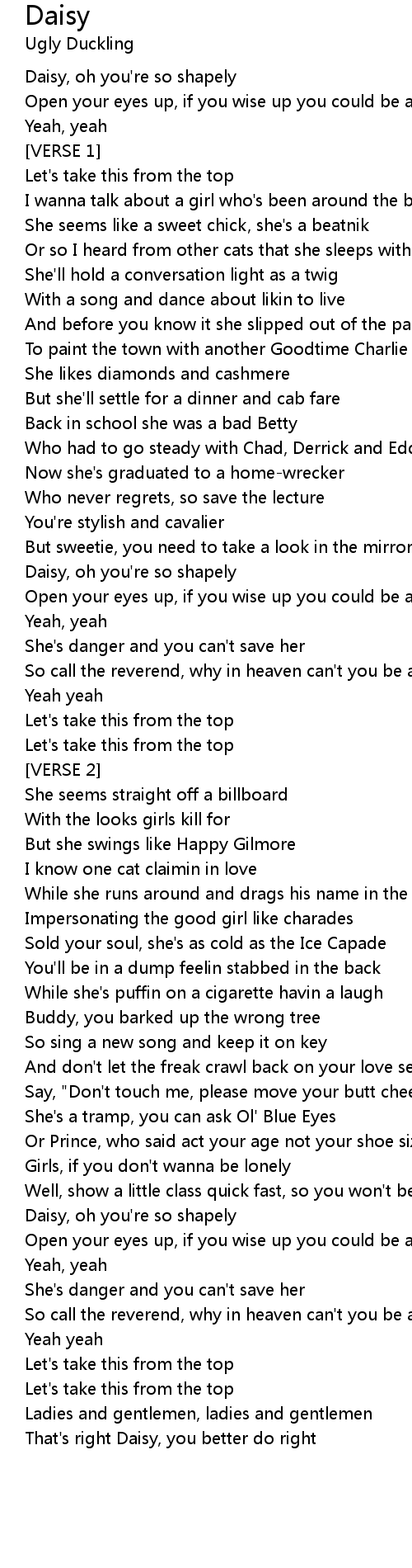 Daisy, oh you're so shapely |