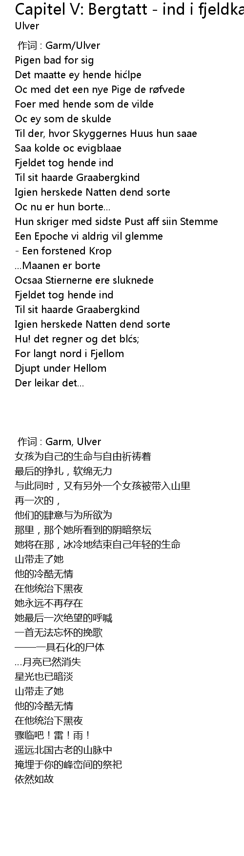 | Song | Capitel V: Bergtatt - ind i fjeldkamrene |