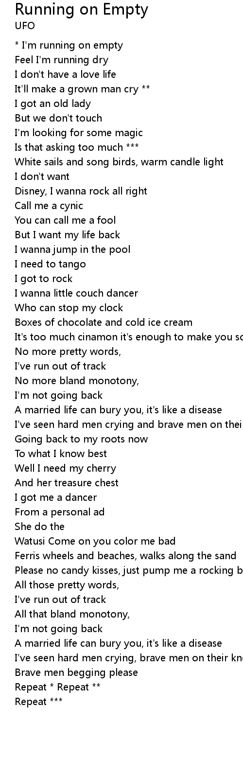 * I'm running on empty |