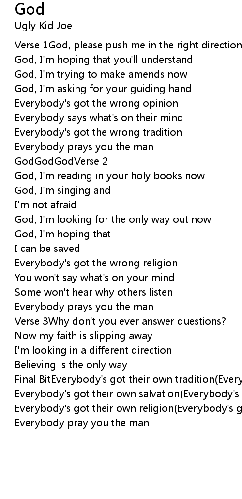 Everybody's got their own religion(Everybody's got the wrong tradition) |