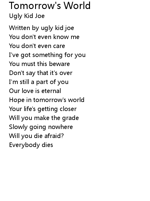 | Song | Tomorrow's World |