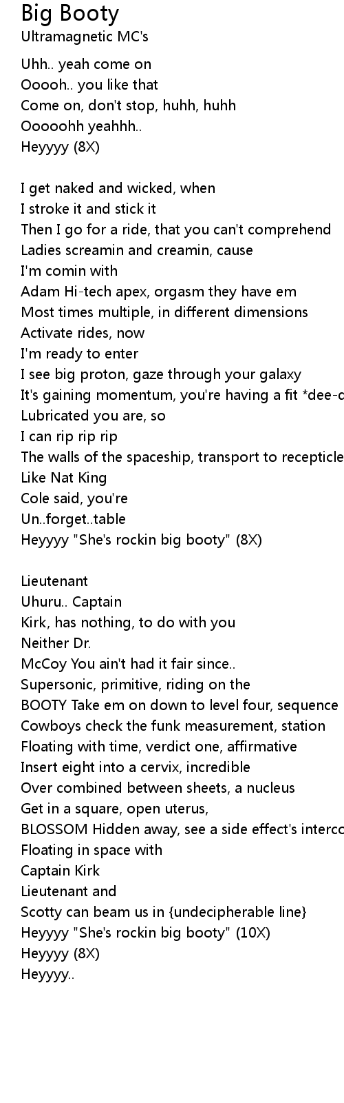 Heyyyy "She's rockin big booty" (8X) [Kool Keith] |