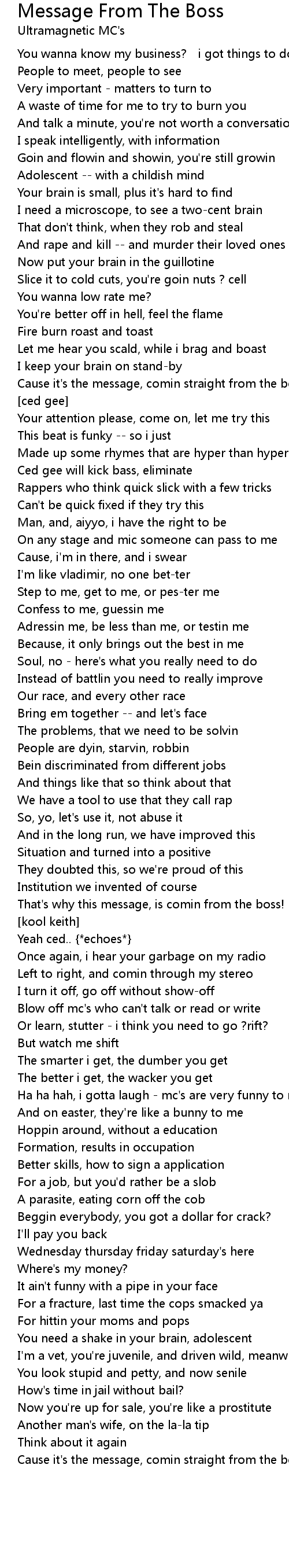 | Ha ha hah, i gotta laugh mc' s are very funny to me | |