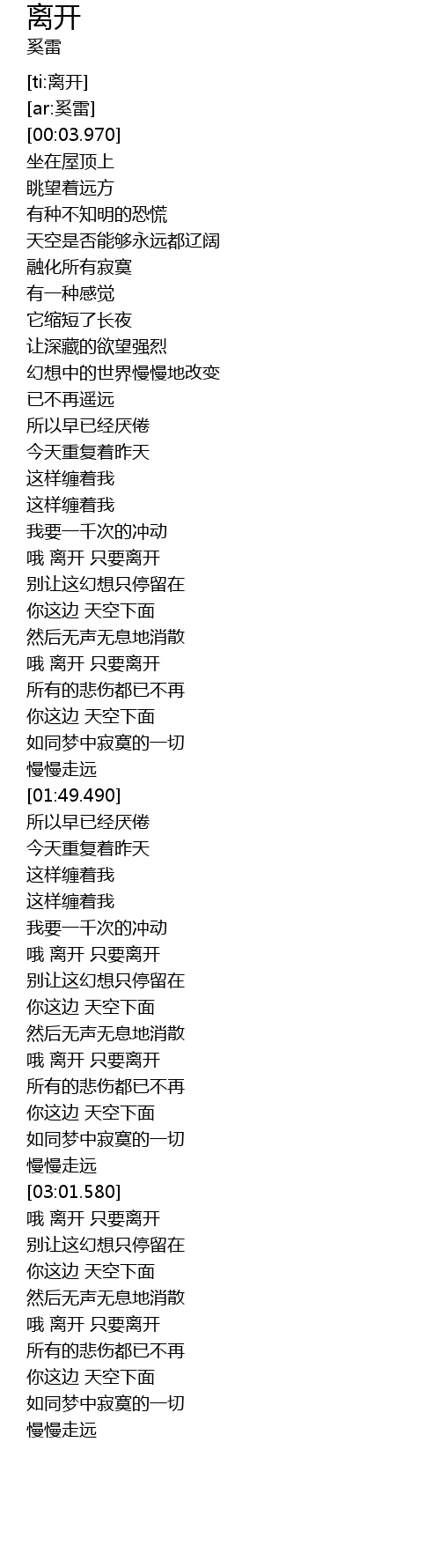 | [03:05.230] | ó lí kāi zhǐ yào lí kāi |