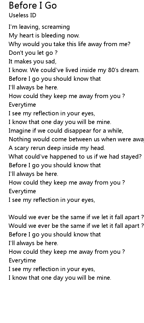 Before I Go Lyrics