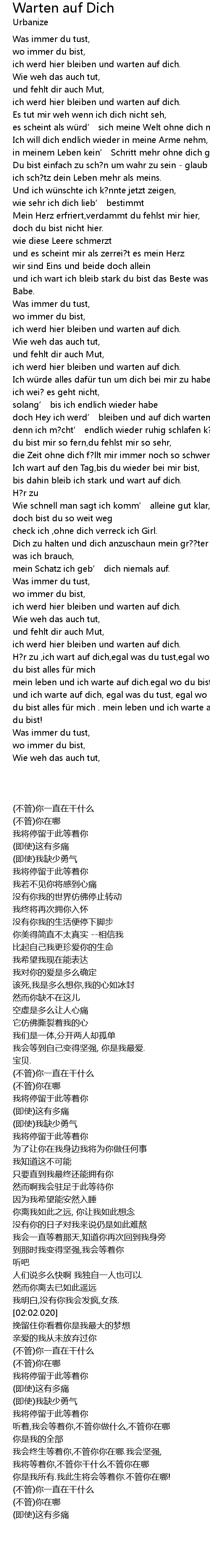 | [02:44.980] | du bist alles fü r mich . mein leben und ich warte auf dich, egal wo du bist! |