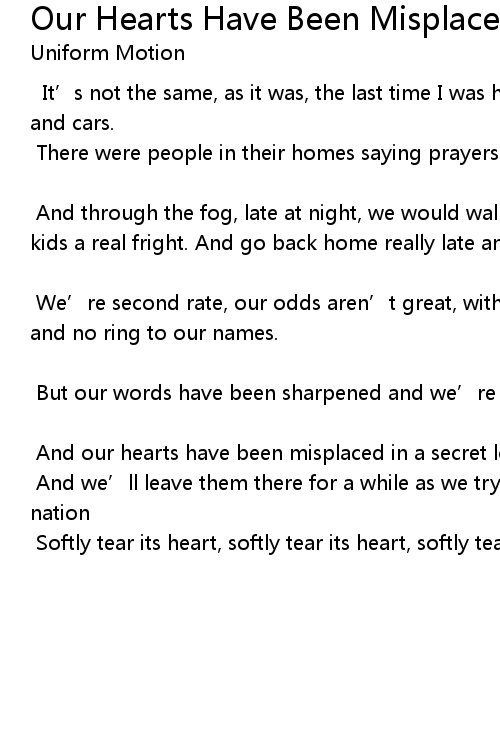 | Song | Our Hearts Have Been Misplaced in a Secret Location |