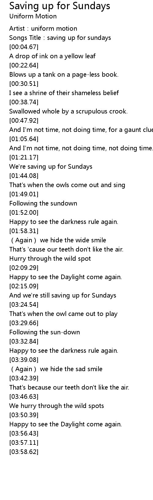 | [00:51.22] | And I'm not time, not doing time, for a gaunt clue stuck in the sky. |