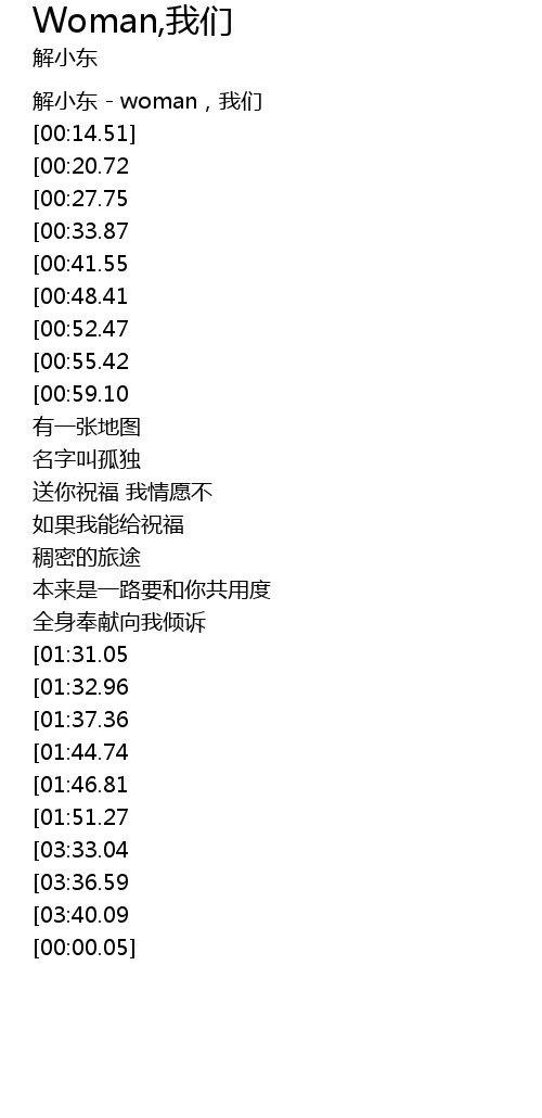 | [00:09.90] | 解小东 - woman,我们 |