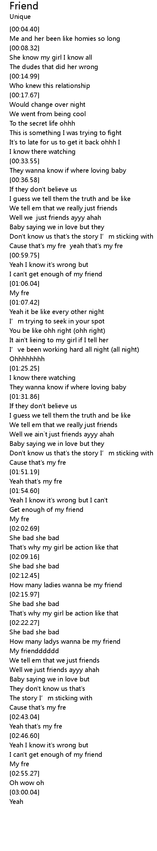 | [01:40.79] | Well we ain`t just friends ayyy ahah |