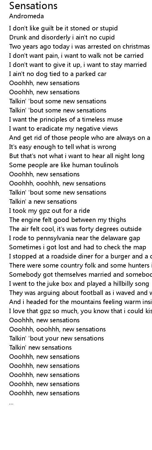 Talkin' 'bout your new sensations |