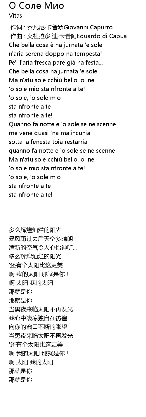 | [01:14.75] | ' o sole, ' o sole mio |