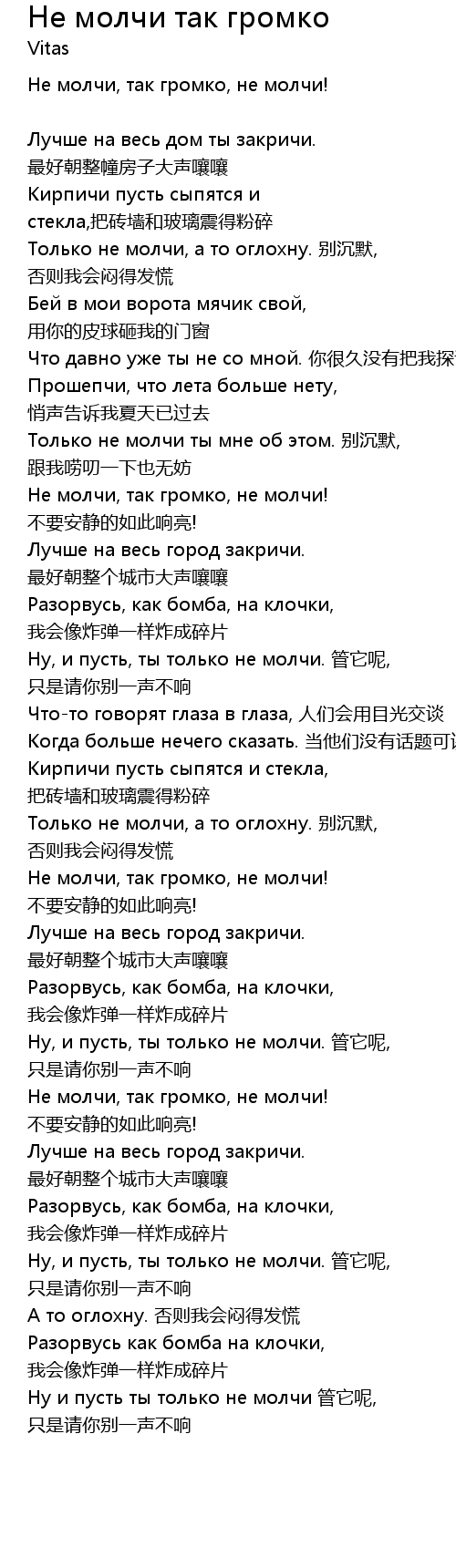 | Не молчи, так громко, не молчи! 不要安静的如此响亮! | |