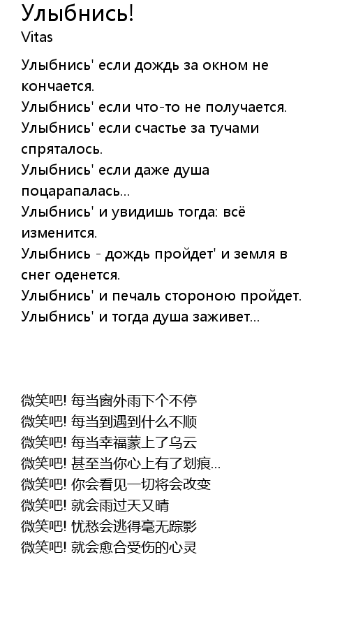 | [00:22.50] | Улыбнись' если счастье за тучами спряталось. |