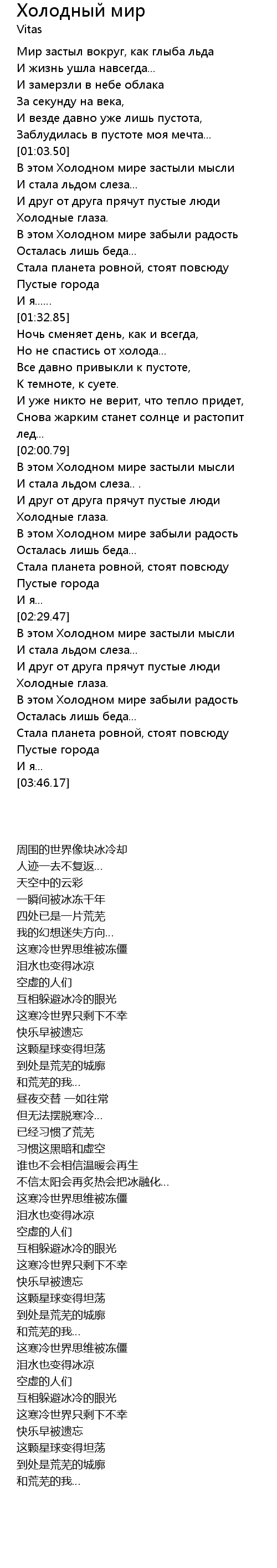 В этом Холодном мире застыли мысли |