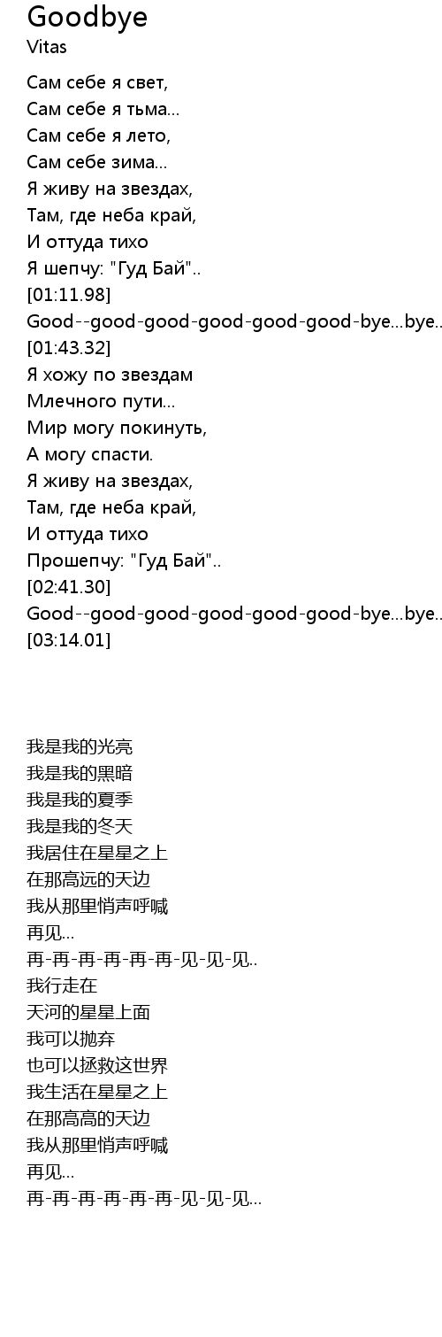 | [01:13.91] | Good--good-good-good-good-good-bye...bye...bye... |
