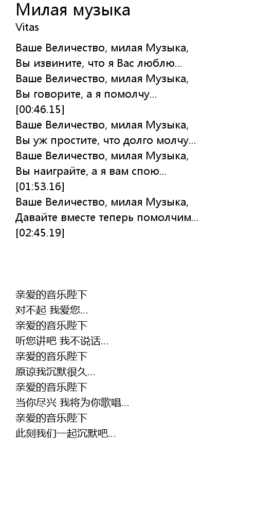 | [01:36.14] | Ваше Величество, милая Музыка, |