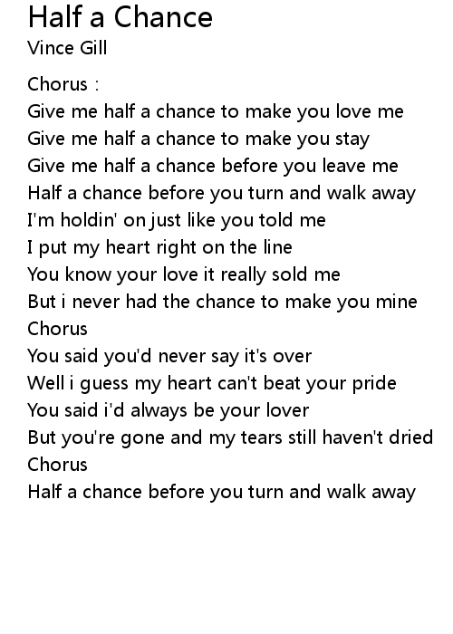 | Give me half a chance to make you stay | |
