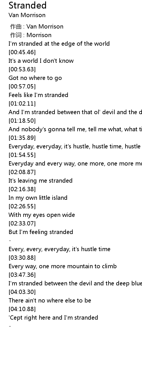 | [04:15.51] | ' Cept right here and I' m stranded |