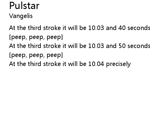 | At the third stroke it will be 10.03 and 50 seconds | |