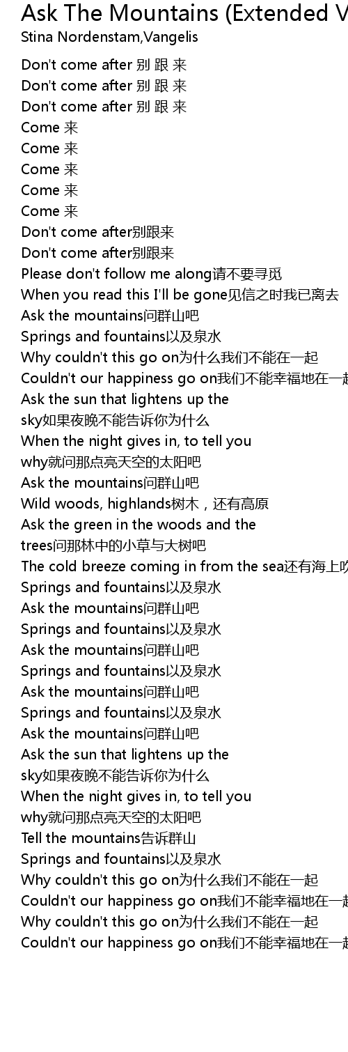 | [05:44.695] | Ask the mountains wèn qún shān ba |